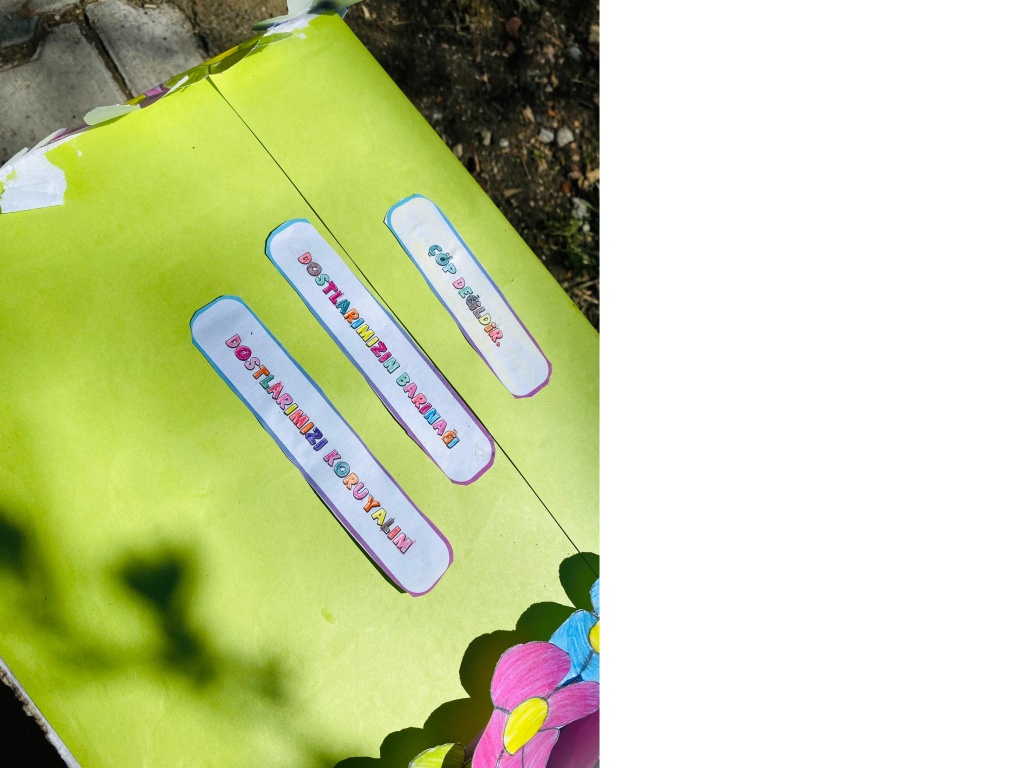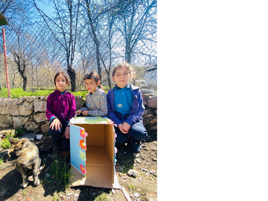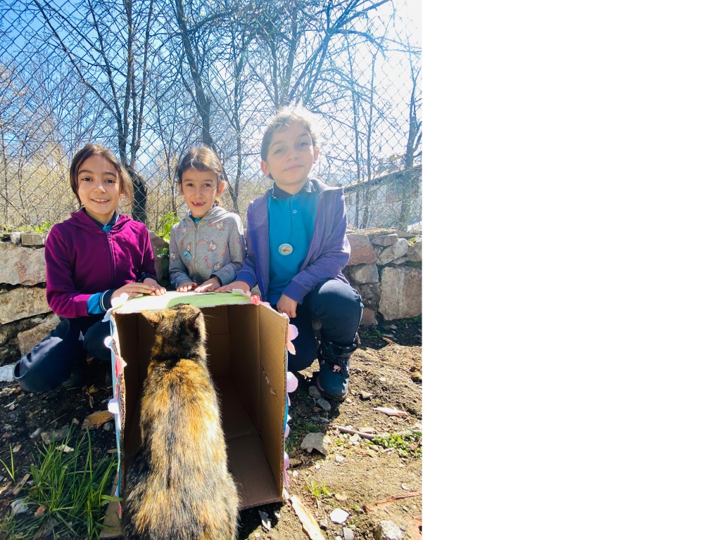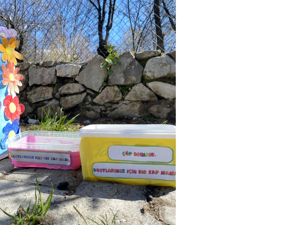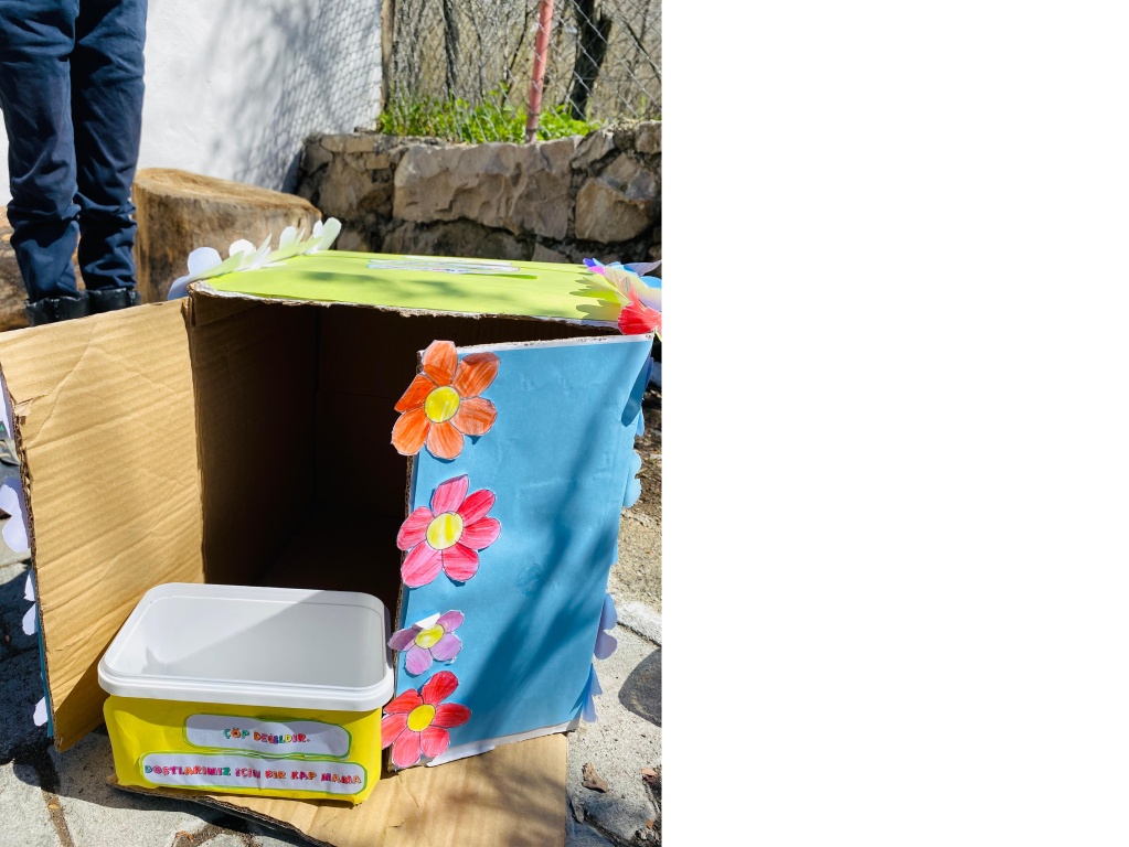 Okulumuzun kedileri için atık malzemelerden barınak ve mama kabı yaptık.